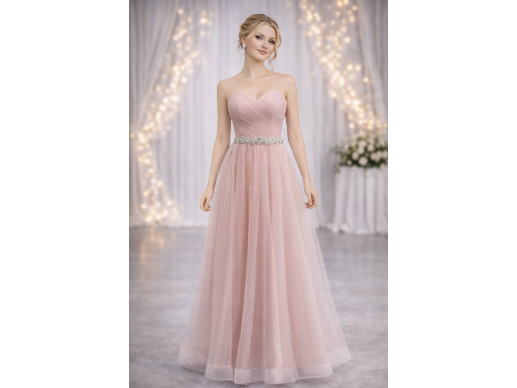 Luxusní tylové plesové šaty v jemné pudrové barvě, ideální na maturitní ples nebo jinou slavnostní příležitost. Šaty mají vyztužený živůtek, který perfektně tvaruje horní část postavy a zajišťuje pohodlné nošení. Záda jsou řešena elegantním šněrováním, které umožňuje nastavit šaty přesně na míru. Jemný tyl dodává šatům lehkost a vzdušný vzhled, který působí romanticky a elegantně. Tyto šaty vám zajistí, že na ples či slavnostní události budete skutečně zářit.