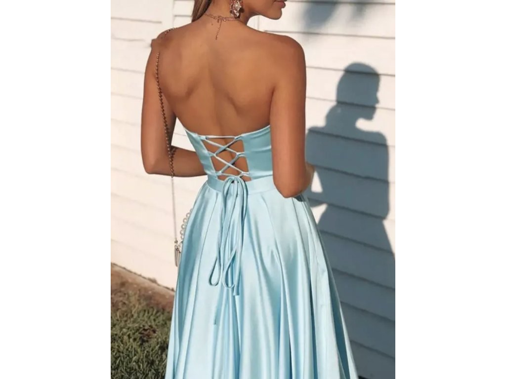 Luxusní hladké saténové plesové šaty na maturitní ples 2024. Šaty jsou ušité z hladkého saténu. Jsou vyztužené, drží bez podprsenky a zezadu jsou šité na šněrování. Pod šaty je možné vzít áčkovou spodničku pro větší objem sukně. Vhodné na maturitní ples, ale i na další společenské události.