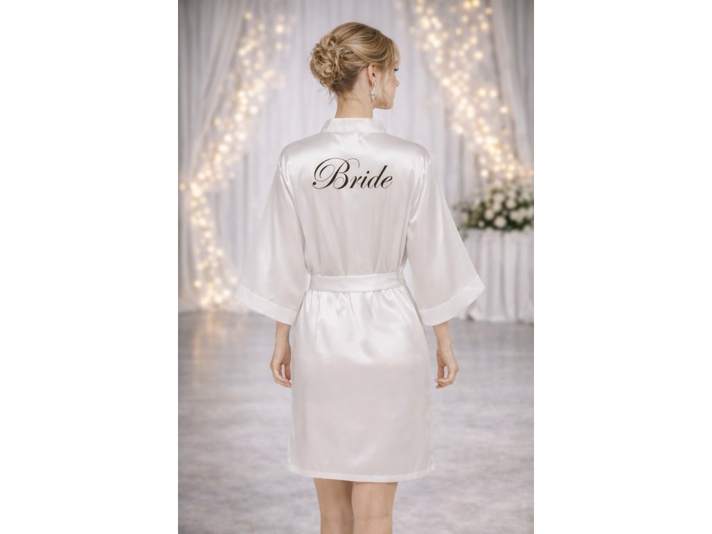 Saténový župan pro nevěstu s nápisem Bride. Vhodné jako dárek.