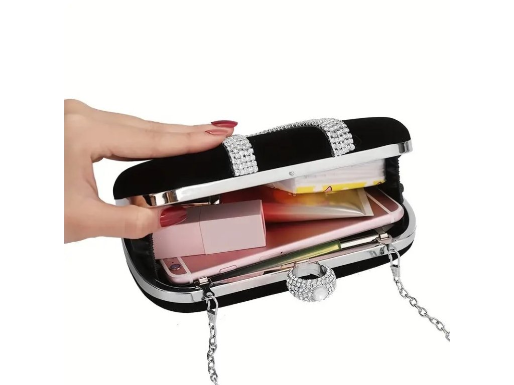 Dodejte svému outfitu nádech elegance s touto luxusní černou kabelkou, která perfektně kombinuje styl a praktičnost. Krásný hladký design s kovovým řetízkem a luxusním zapínáním vás nadchne na první pohled. Kabelka je ideální na společenské události, svatby, večeře či večírky. Díky praktickému zapínání zůstanou všechny vaše věci bezpečně na svém místě. Kompaktní velikost nabízí dostatek místa pro telefon, peněženku či kosmetiku. ✨👜