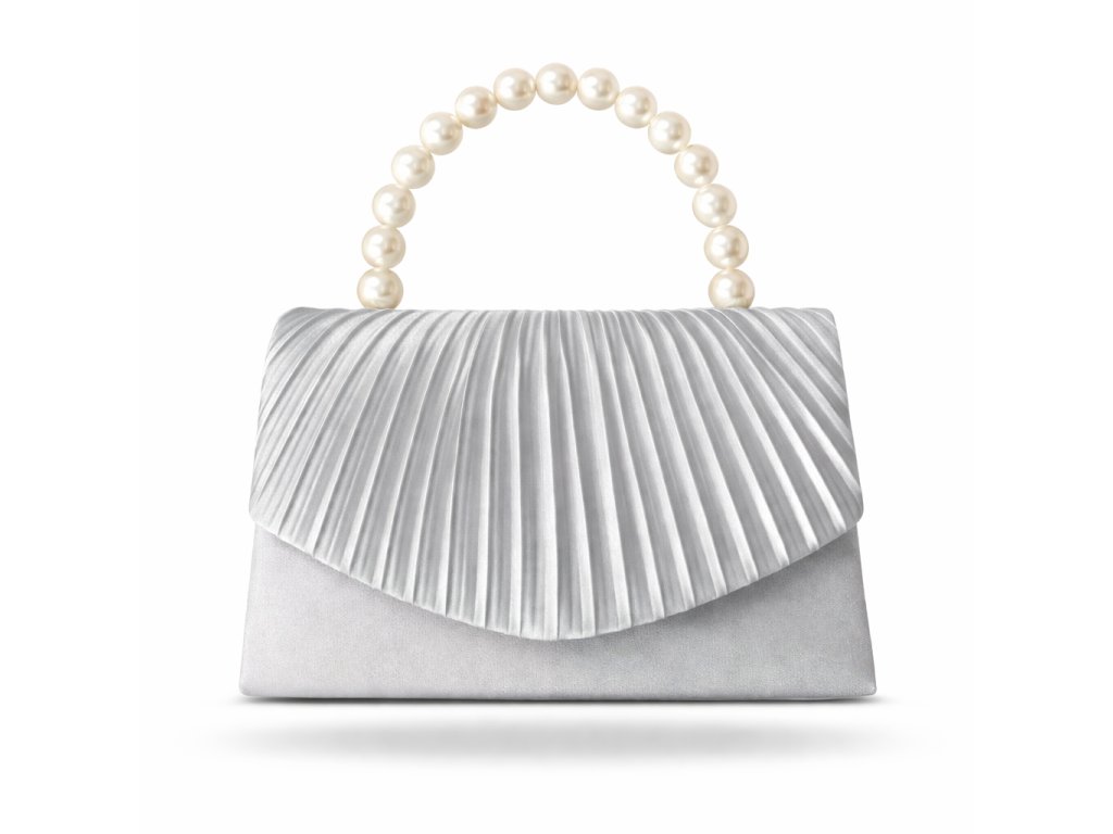 Tato stříbrná kabelka Chiara je jemná, zářivá a dokonale ladí s každým slavnostním outfitem. Řasená klopa ve vějířovém stylu dodává kabelce elegantní strukturu a pohyb, zatímco obloukové držadlo z perlových korálků funguje jako stylový šperk i praktický detail. Ideální volba na svatby, plesy nebo jiné večerní události, kde chcete zazářit s grácií.