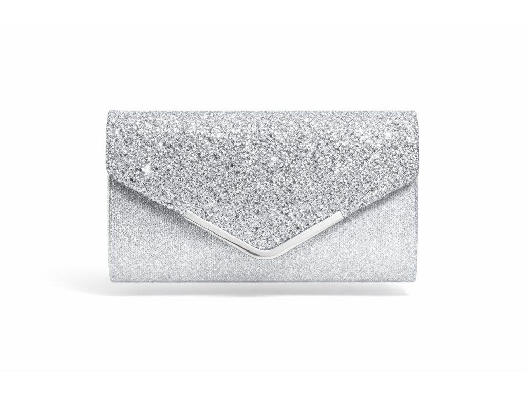 Tato stříbrná kabelka Valentina je skutečnou hvězdou večera. Zářivá klopa s jemným třpytem a šik zakončení do špičky s kovovým detailem jí dodávají oslnivý vzhled. Jednoduchý a čistý tvar podtrhuje její večerní charakter a činí z ní ideální doplněk pro plesy, svatby nebo jiné slavnostní události. Kabelka je dostatečně prostorná pro vaše nezbytnosti a zároveň působí jemně a elegantně.