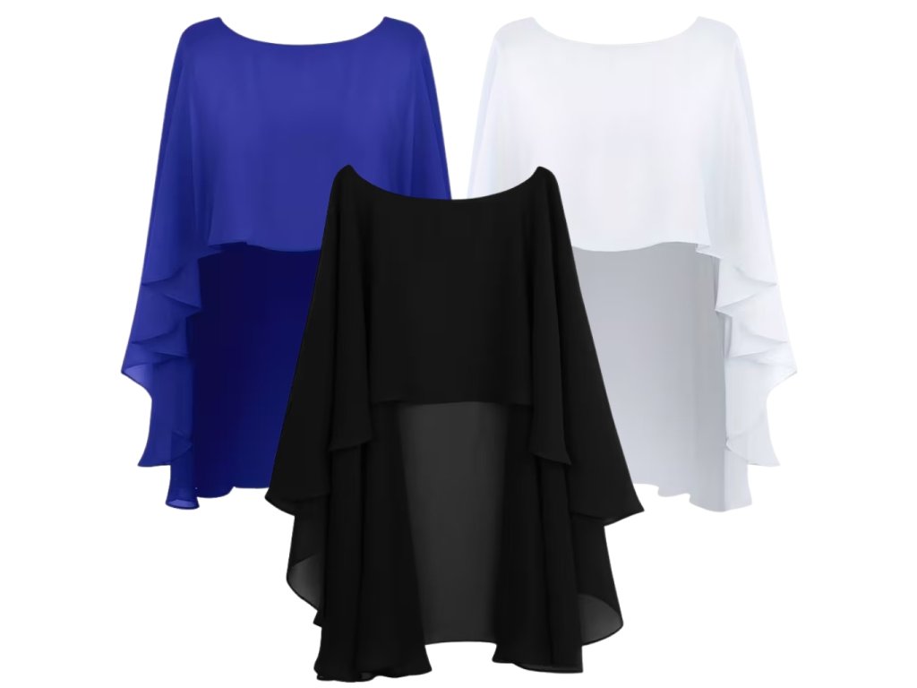 Elegantní společenské bolerko, přehoz nebo tunika přes společenské šaty. Přehoz působí velmi elegantní a je univerzální. Příjemný šifon. Obléká se přes hlavu.