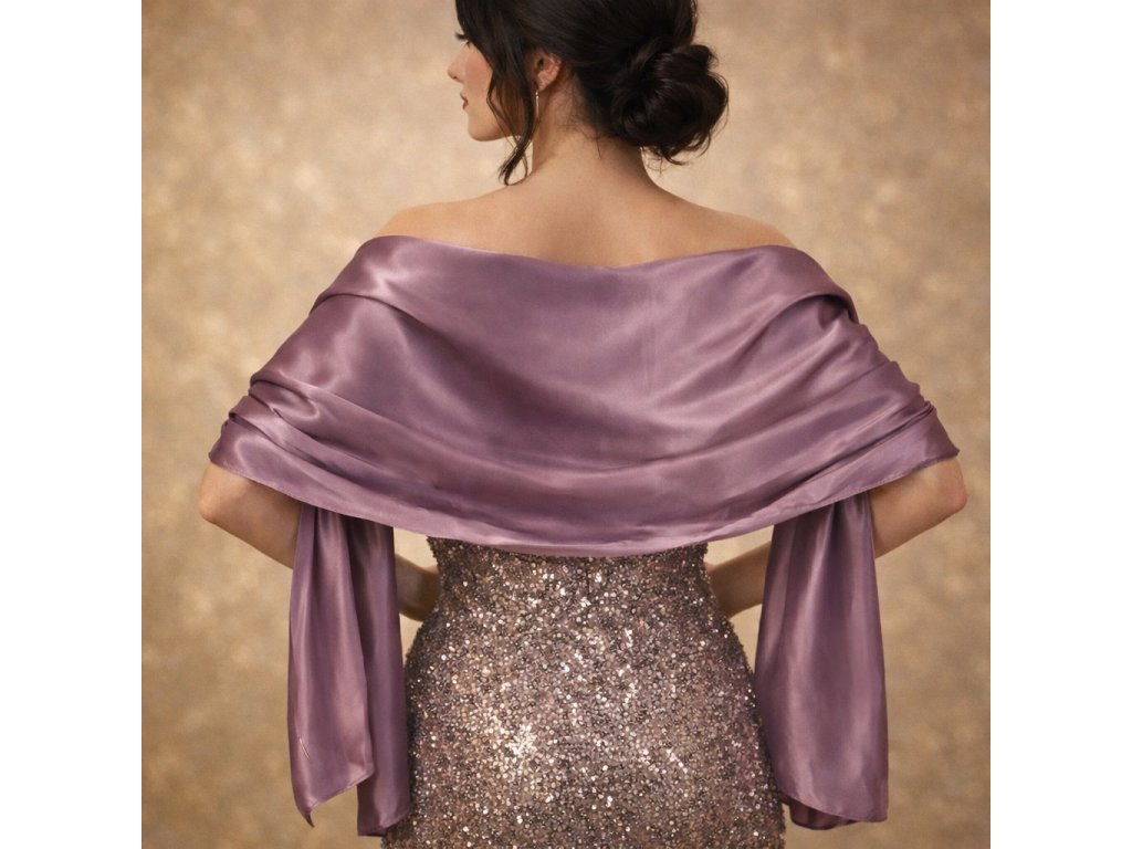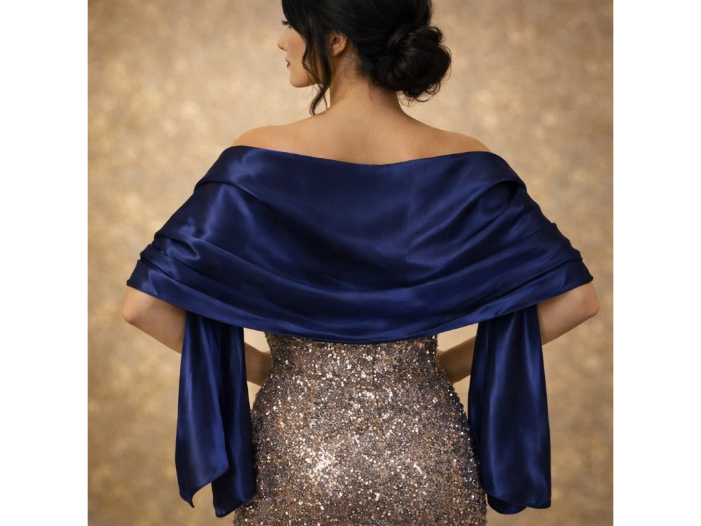 Lesklý saténový přehoz přes ramena by neměl chybět v šatníku žádné ženy. Hodí se téměř ke každým šatům nebo kostýmku, působí elegantně a navíc perfektně plní svojí funkci. Ať už potřebujete skrýt větší paže, zakrýt záda nebo si s holými rameny připadáte jak se říká "moc nahatá", saténový společenský šál skvěle upotřebíte. Navíc můžete přehoz zkombinovat se svými dalšími doplňky, doporučujeme proto mrknout po kabelkách a nebo špercích z naší nabídky.