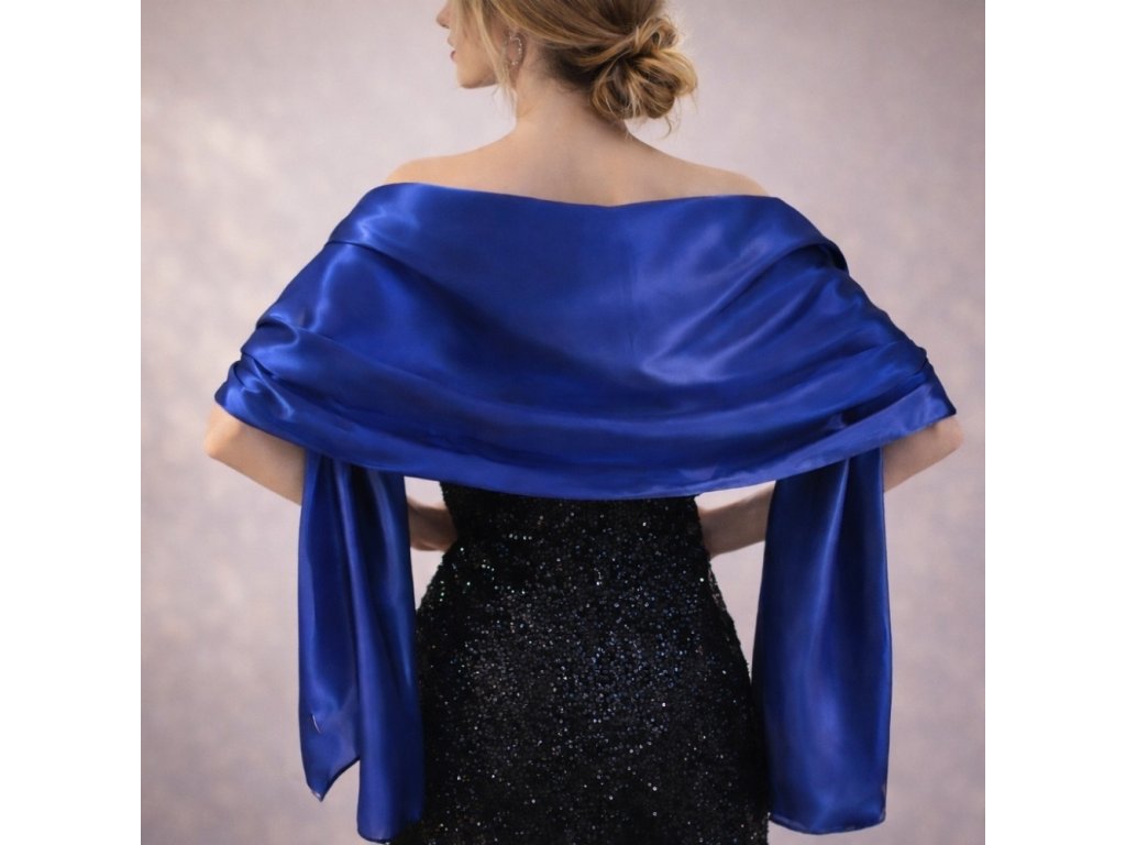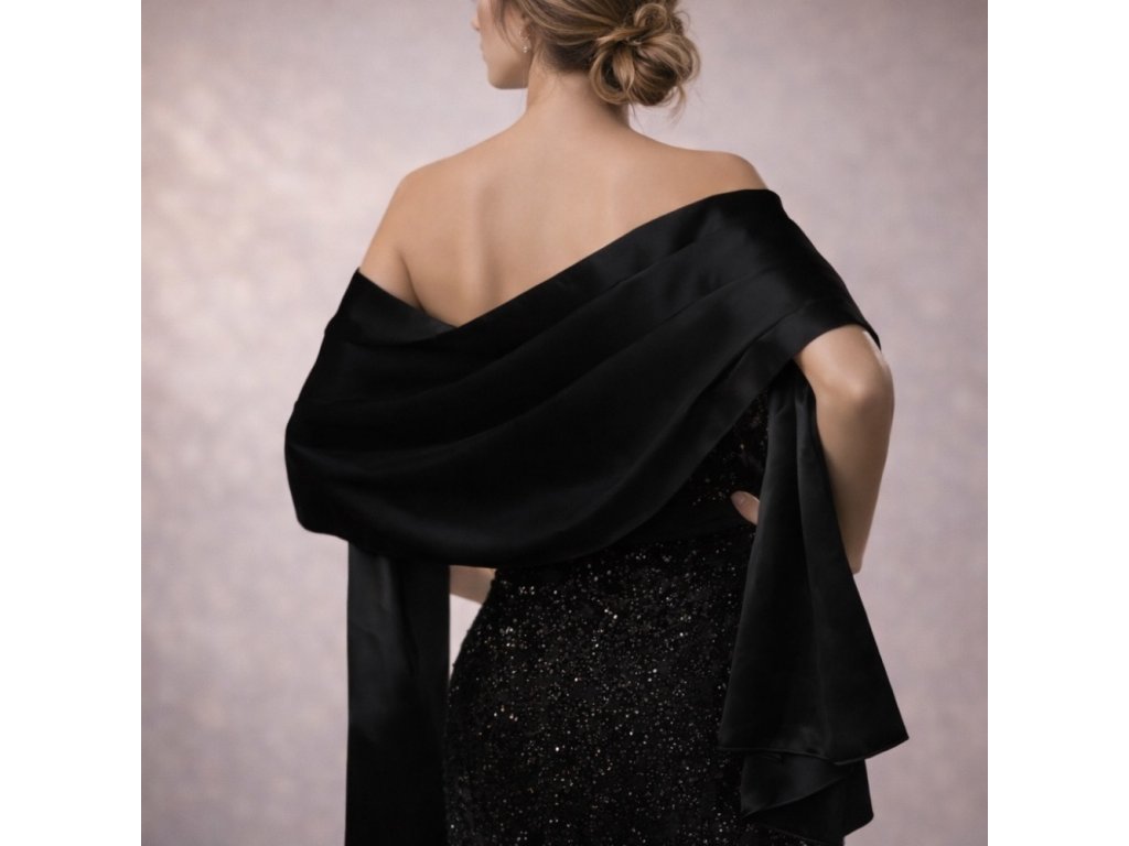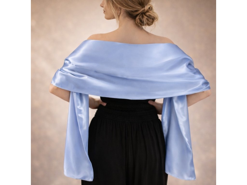 Jednoduchý saténový přehoz přes ramena je praktický a elegantní doplněk ke společenským nebo svatebním šatům. Díky jemnému a lesklému materiálu krásně splývá a pohodlně se nosí přes ramena, kolem krku nebo lehce uvázaný. Přehoz dodá vašim šatům elegantní vzhled a podtrhne slavnostní charakter outfitu.