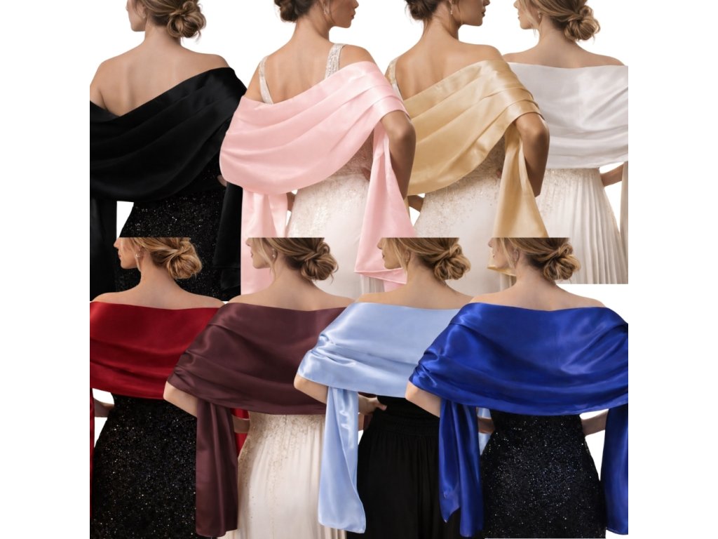saténový šál přes ramena - přehoz přes společenské šaty - výběr barev