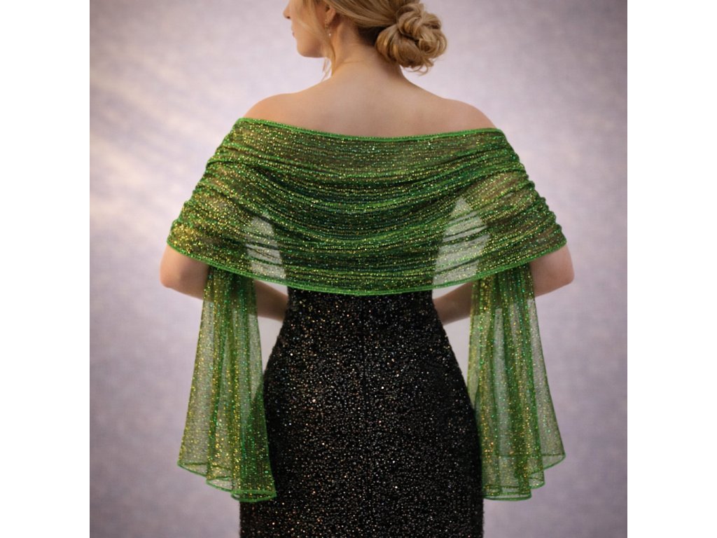 třpytkatá společenská šála přes šaty