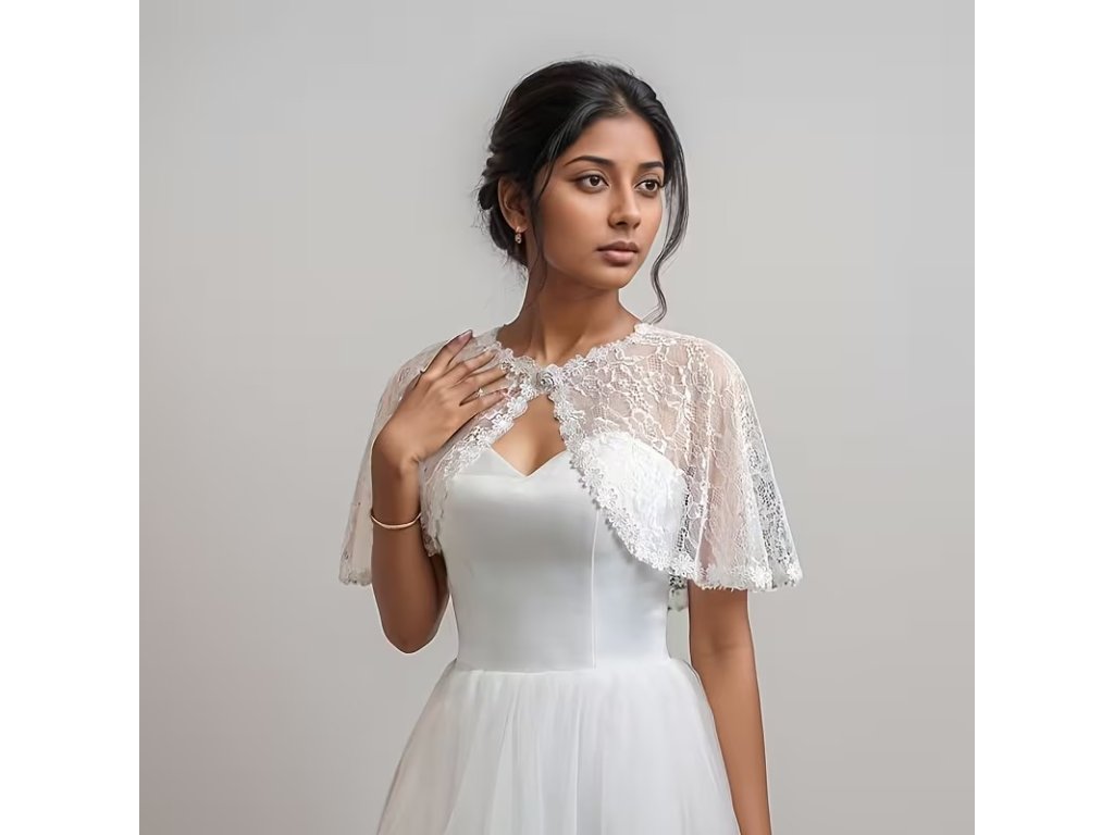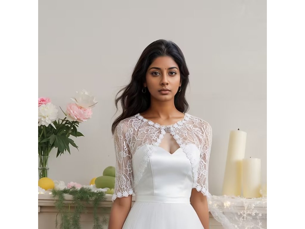 Toto elegantní krémové společenské bolerko z jemné krajky je ideálním doplňkem ke svatebním, plesovým i večerním šatům. Krémová barva působí velmi jemně, slavnostně a nadčasově a krásně ladí zejména se světlými a pastelovými tóny šatů. Krajkový materiál dodává outfitu luxusní vzhled, aniž by přehlušil samotné šaty. Bolerko elegantně zakryje ramena, paže i horní část zad a je tak vhodné i pro formálnější příležitosti. Díky lehkému provedení je pohodlné na nošení a vhodné i pro delší společenské události.