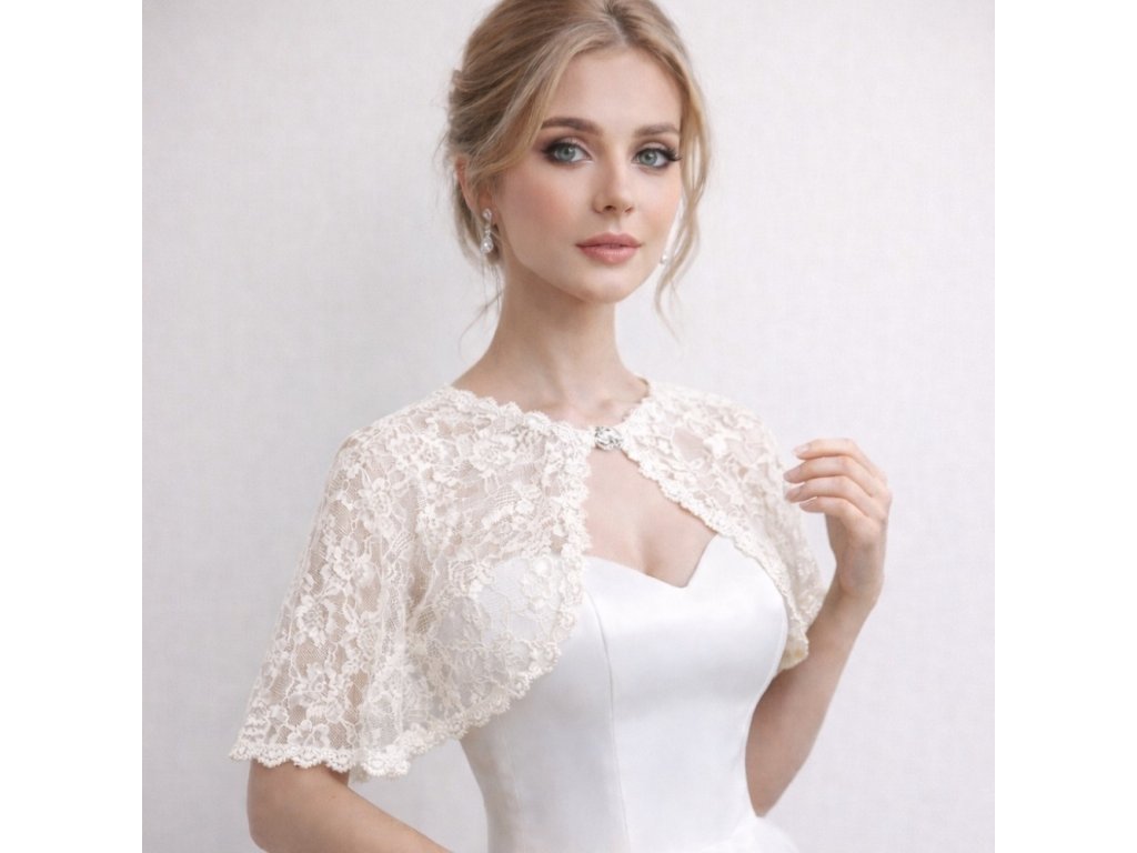 Toto elegantní krémové společenské bolerko z jemné krajky je ideálním doplňkem ke svatebním, plesovým i večerním šatům. Krémová barva působí velmi jemně, slavnostně a nadčasově a krásně ladí zejména se světlými a pastelovými tóny šatů. Krajkový materiál dodává outfitu luxusní vzhled, aniž by přehlušil samotné šaty. Bolerko elegantně zakryje ramena, paže i horní část zad a je tak vhodné i pro formálnější příležitosti. Díky lehkému provedení je pohodlné na nošení a vhodné i pro delší společenské události.