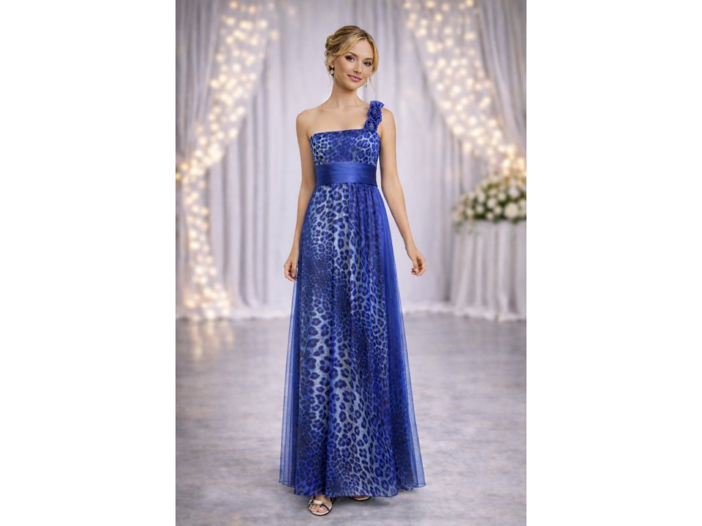 Tygrované společenské dlouhé šaty na ples. Tyto šaty jsou šité na jedno ramínko, jsou z boku na zip a jsou vyztužené.