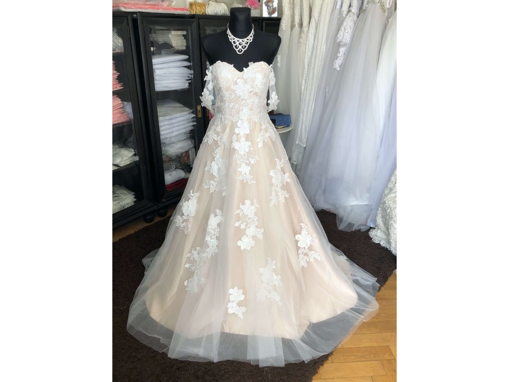 champagne tylové svatební šaty Ester se spadlými ramínky