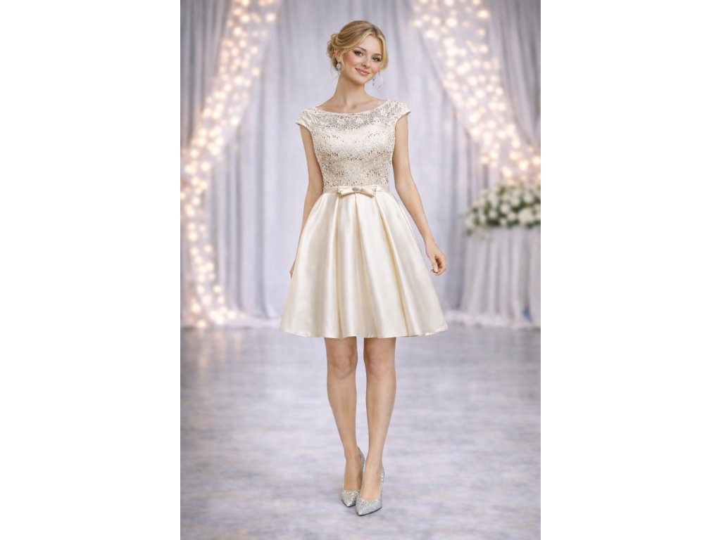 krátké krémové společenské šaty do tanečních Mina