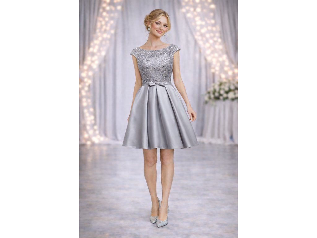 krátké šedivé společenské šaty do tanečních Mina